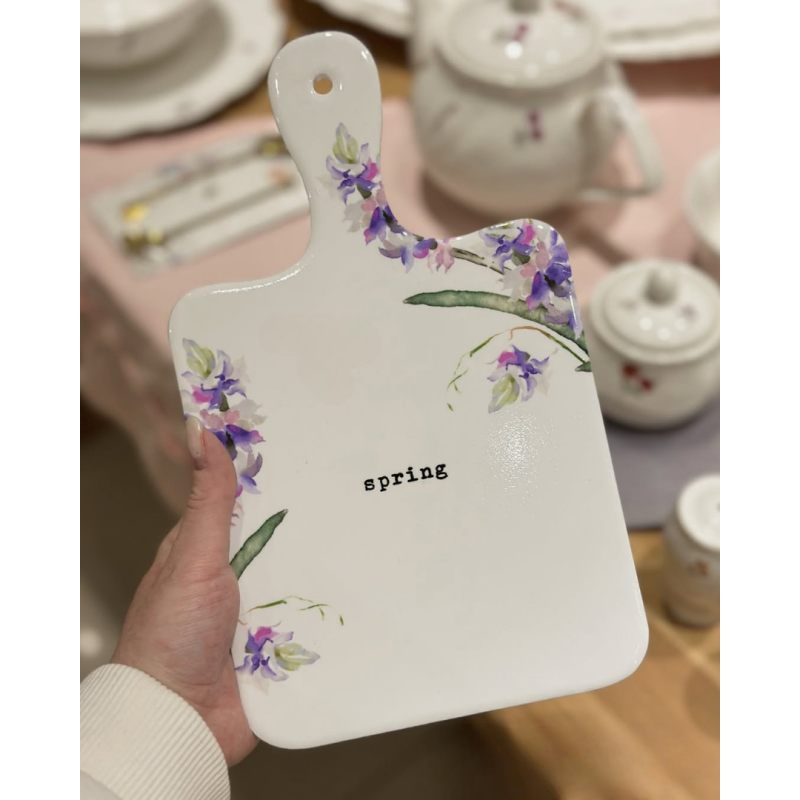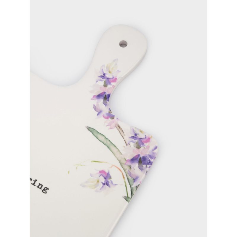 Элегантная подставка с нежным цветочным рисунком сирени в пастельных тонах — практичная деталь для вашей кухни. Украшена изображениями цветов и лаконичной надписью «spring», создающей весеннее настроение.
