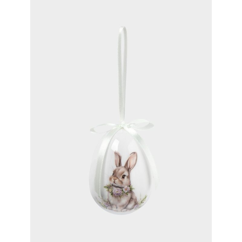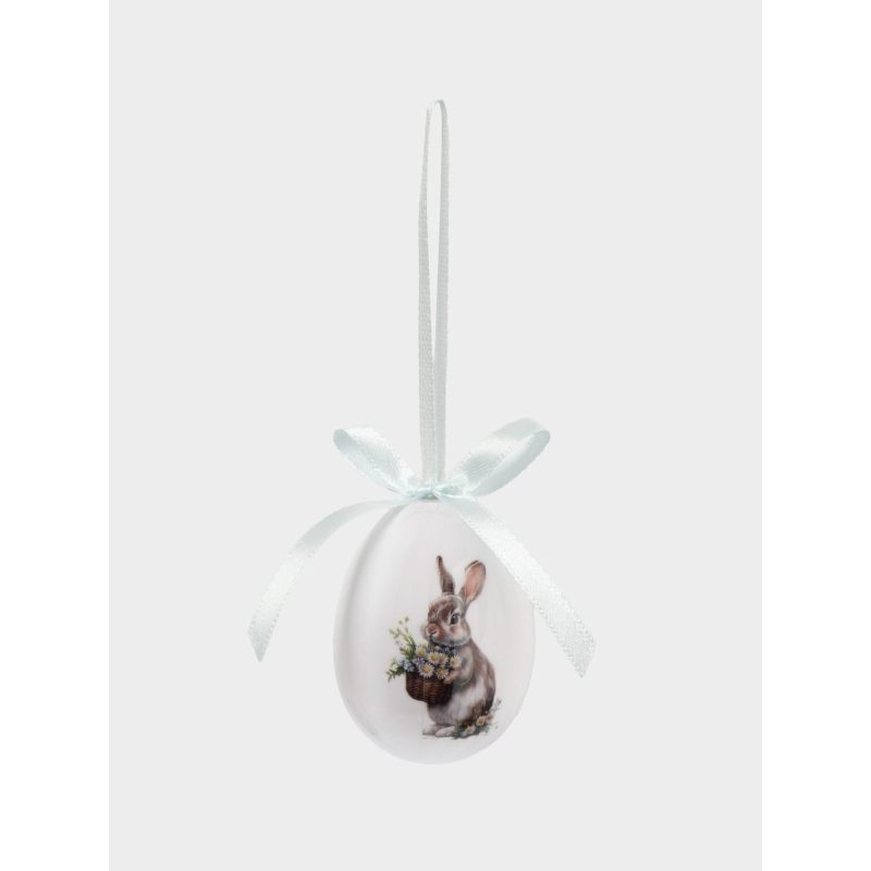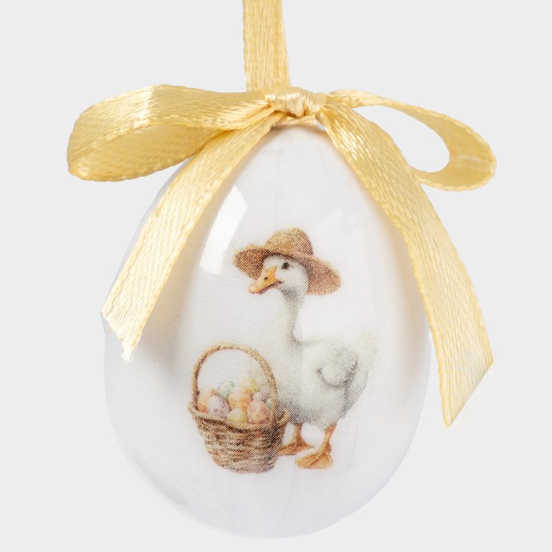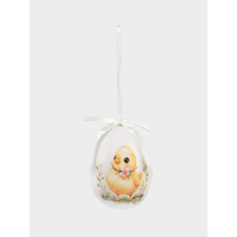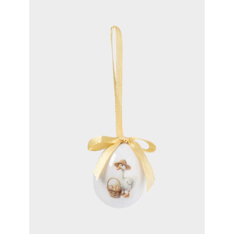 Форма классического яйца, символизирующего возрождение и новую жизнь, дополнена утончённым художественным рисунком. На поверхности — изящные мотивы: нежные весенние цветы, лёгкие завитки и традиционные предвестники Пасхи, гусь, цыпленок и кролики, передающие тепло и радость праздника. Исполнение с яркими акцентами — впишутся в любой стиля интерьера.