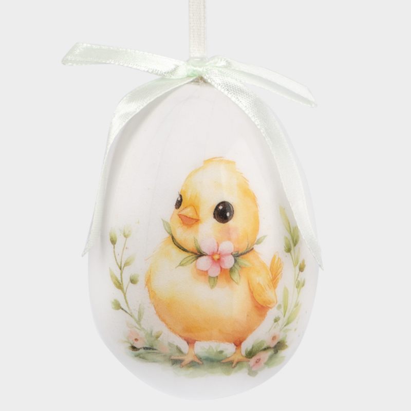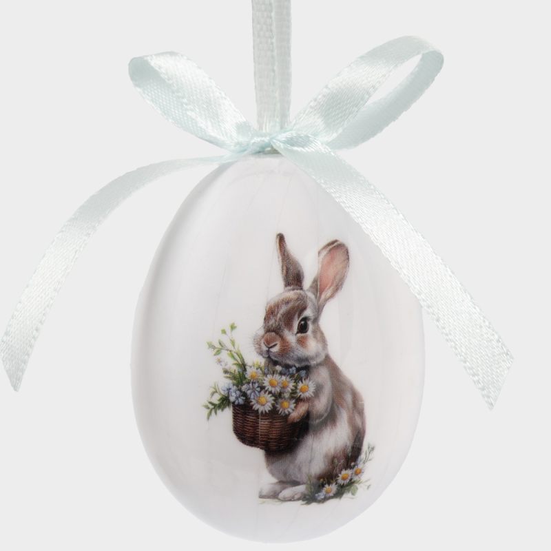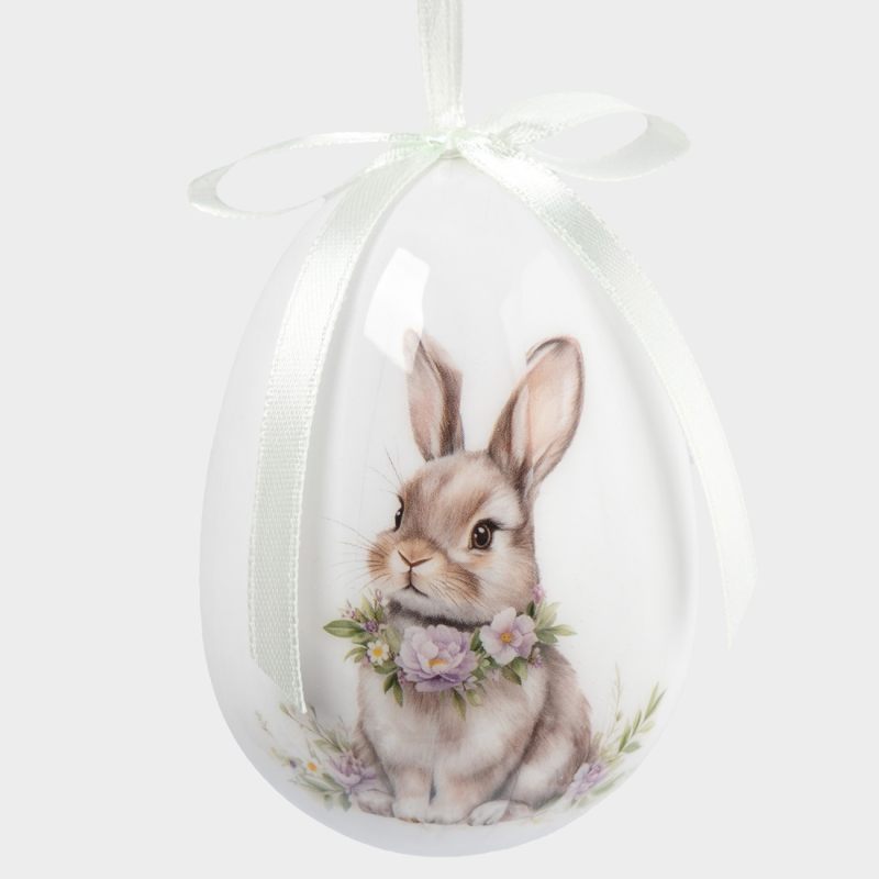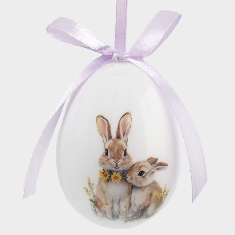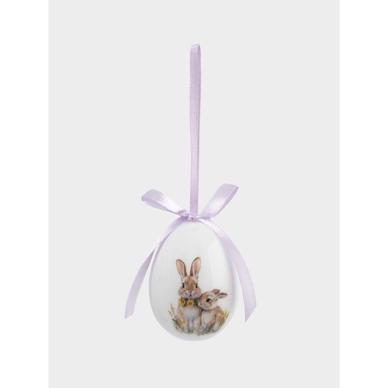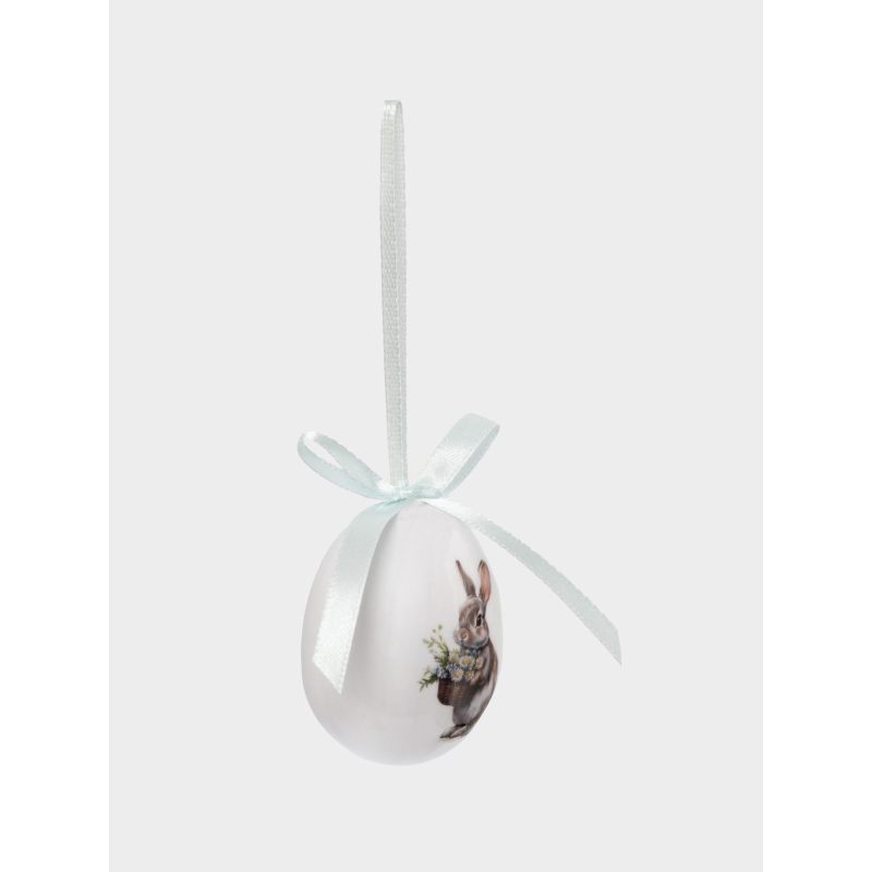 Форма классического яйца, символизирующего возрождение и новую жизнь, дополнена утончённым художественным рисунком. На поверхности — изящные мотивы: нежные весенние цветы, лёгкие завитки и традиционные предвестники Пасхи, гусь, цыпленок и кролики, передающие тепло и радость праздника. Исполнение с яркими акцентами — впишутся в любой стиля интерьера.