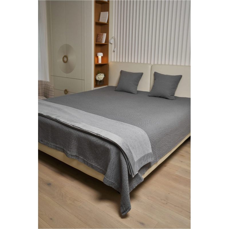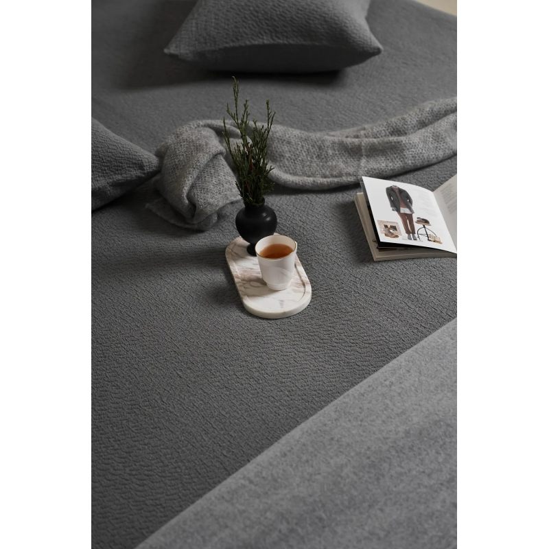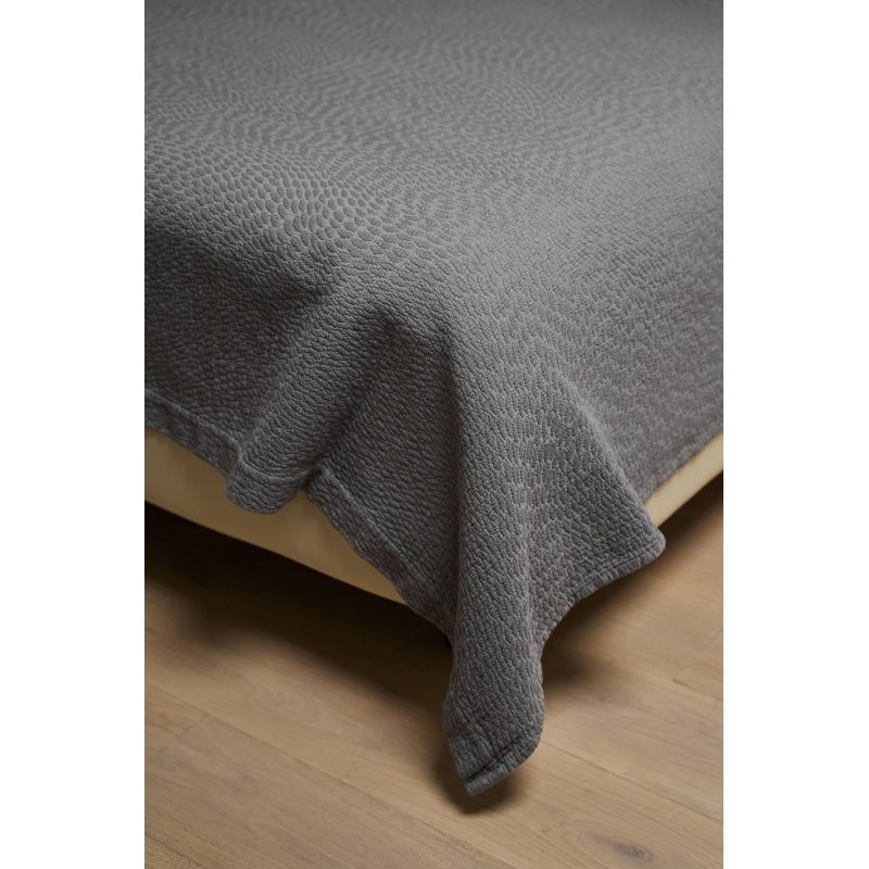 ЛУННАЯ ЖЕМЧУЖИНА — покрывало, которое переосмысливает роскошь. Его название говорит само за себя: каждая деталь узора, каждый "боб" на поверхности обладает собственным мерцанием, создавая эффект лунной дорожки на вашей кровати. Уникальная технология мерцания покрывало, темно- серый с серебристо- зеленоватым мерцаниям в гранулах.