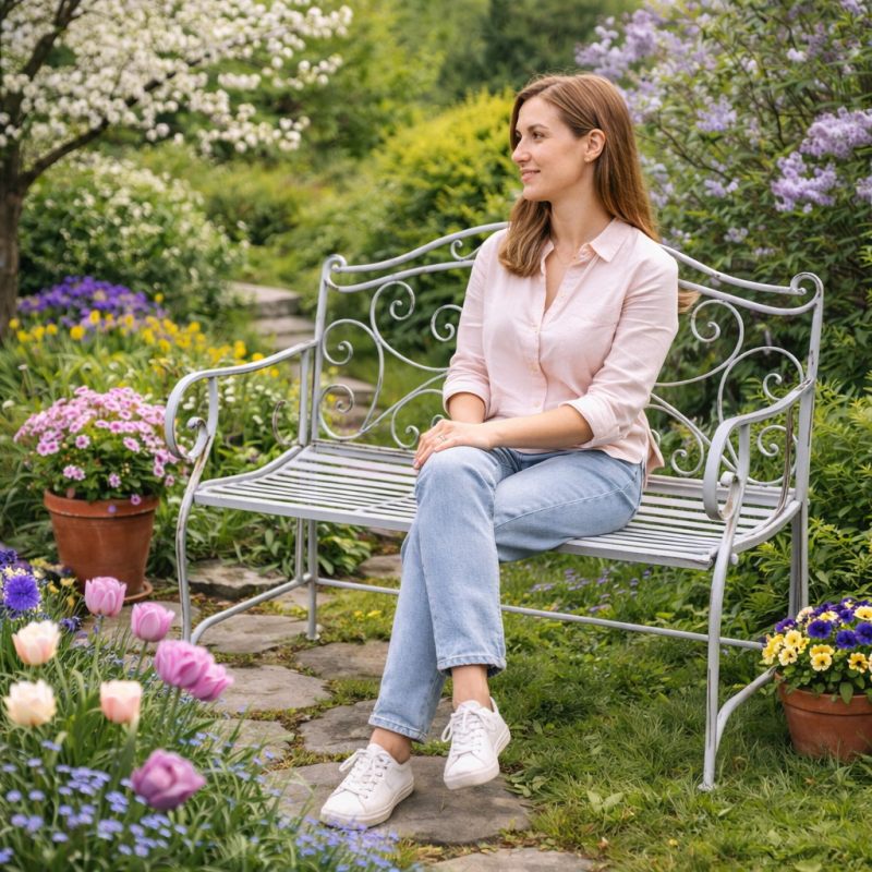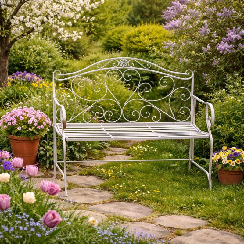 Эта скамейка не только функциональна, но и придаёт пространству нотку элегантности и изысканности, превращая обычный уголок сада в место для приятных отдыха и общения.