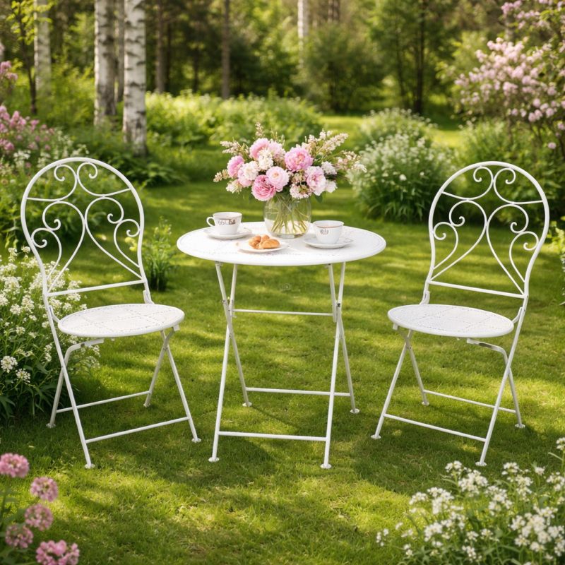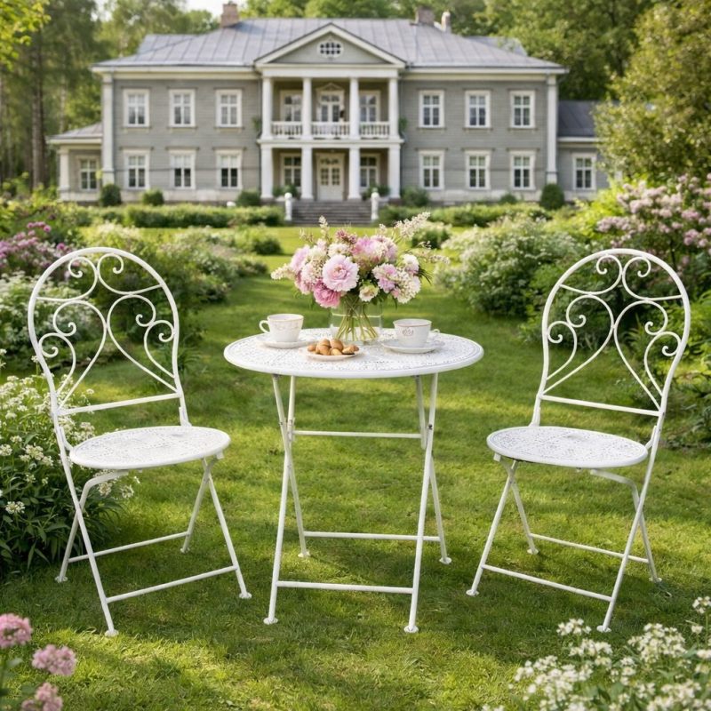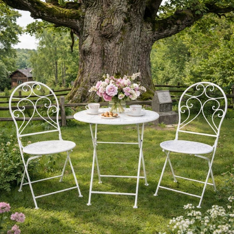 Садовый набор мебели из стола и двух стульев: элегантность ковки для вашего сада, дачи или террасы.