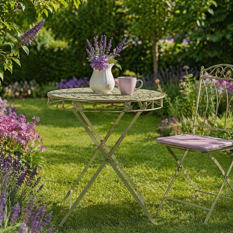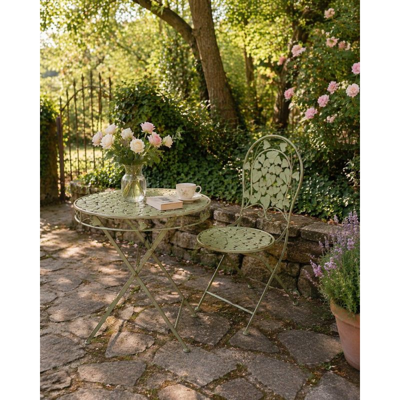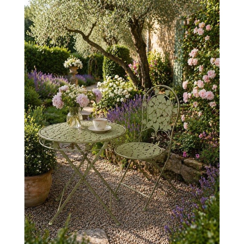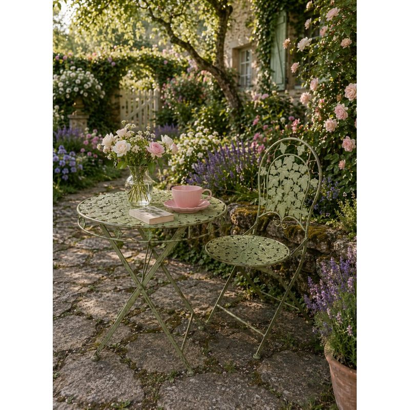Представляем вам изысканный круглый столик, выполненный из кованого металла в нежном зеленом цвете, который станет настоящим украшением вашего сада или террасы. С диаметром 70 см, этот столик идеально подходит для романтических вечеров, дружеских встреч и спокойных завтраков на свежем воздухе.