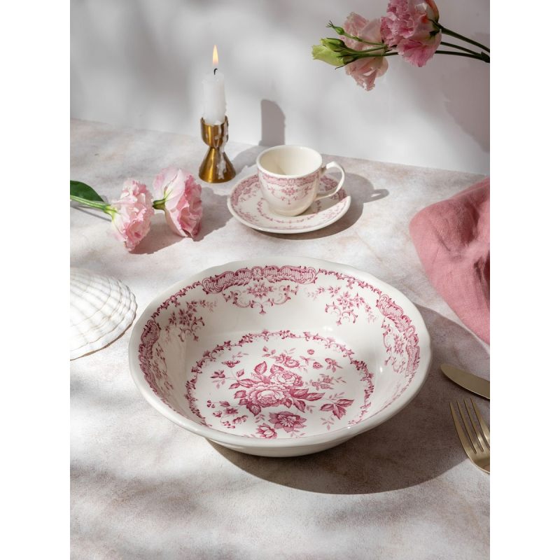 Изящный винтажный дизайн. Нежные розы, выполненные в технике деколи, создают атмосферу старинной итальянской виллы. Каждый узор — словно отсылка к вековым традициям тосканского мастерства, бережно перенесённая на современную керамику.