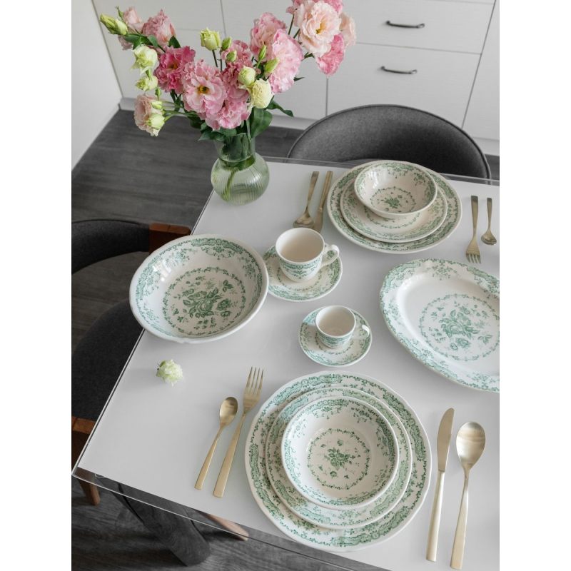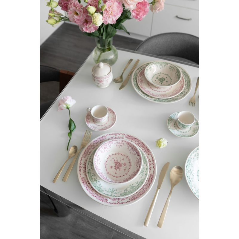 Гармоничная цветовая палитра. Пастельные оттенки (пудровые оттенки розовый, синий, зеленый, желтый и серый) легко сочетаются с другой посудой и вписываются в любой стиль сервировки — от прованса и шебби‑шика до современного минимализма.