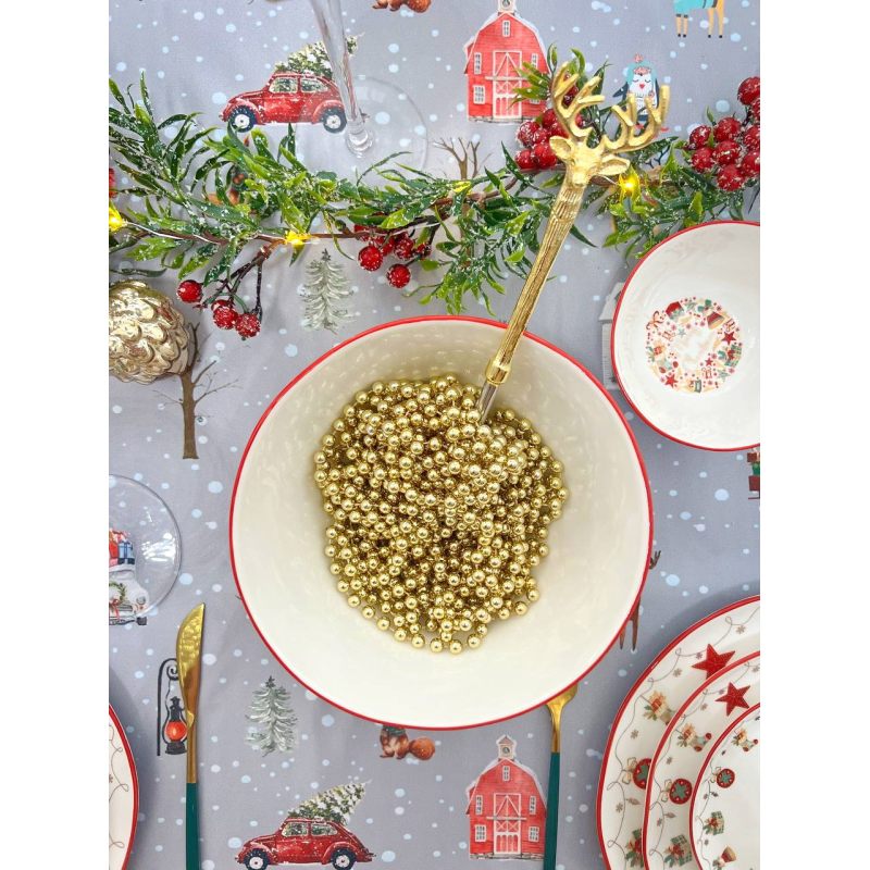 Яркий красный цвет в сочетании с утончённым золотым декором и изысканным новогодним принтом превращают этот салатник в декоративный шедевр. Его уникальный дизайн притягивает взгляды и задаёт тон всей сервировке.