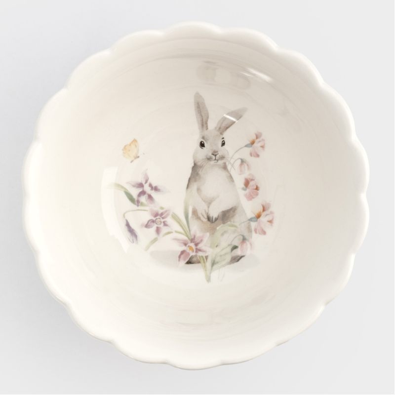 Нежная фарфоровая чаша с волнистым краем будто создана для того, чтобы дарить радость в светлый день Пасхи. В центре композиции — очаровательный кролик, окружённый букетом первоцветов: изящные лепестки, сочная зелень и лёгкая бабочка создают атмосферу пробуждающейся природы. Мягкие пастельные оттенки рисунка наполняют изделие особым теплом и уютом, перенося в мир весенней лёгкости и гармонии.