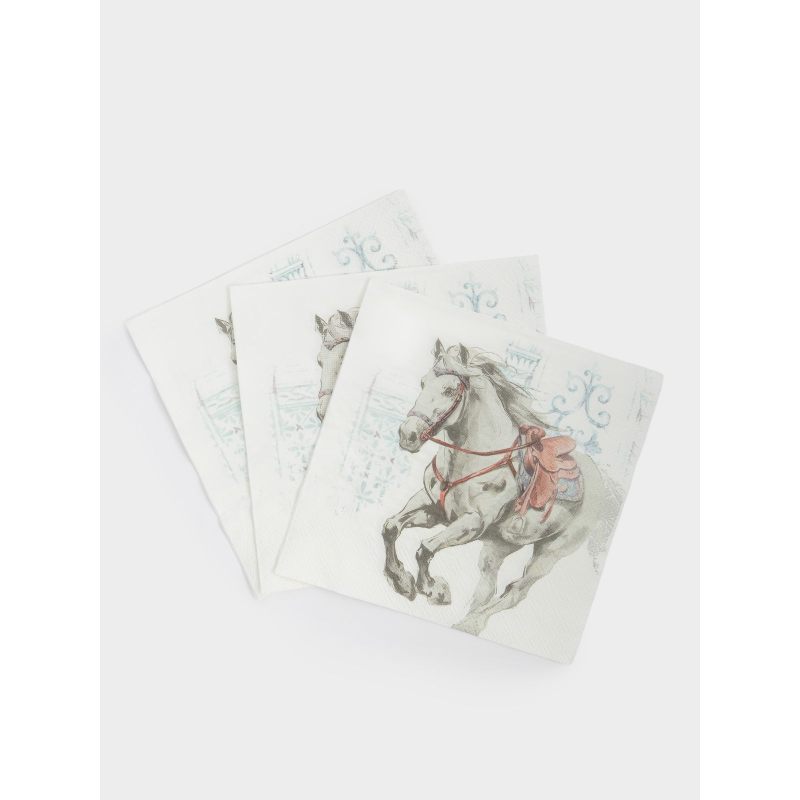 Элегантные салфетки "Белый конь" — воплощение благородства и изысканности. Роскошные бумажные салфетки, которые станут настоящим украшением вашего праздничного стола. Благородный образ грациозного коня, изящно размещённый на белоснежном фоне, превращает обычный предмет сервировки в произведение искусства.