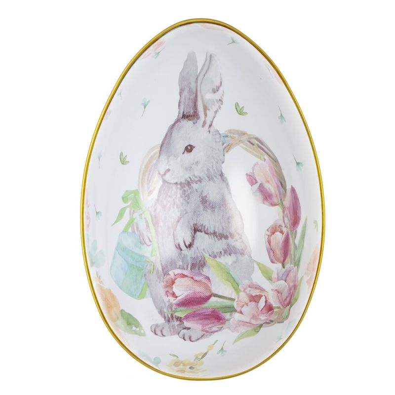Пасхальная шкатулка «Яйцо» — очаровательный элемент праздничного декора, выполненный в форме изящного яйца с золотой окантовкой. Центральным мотивом композиции стал милый кролик, окружённый нежными тюльпанами и весенними цветами, нарисованными в мягкой акварельной технике. Кролик держит в лапках маленькую корзинку, словно готовится к пасхальным хлопотам, добавляя изделию особую трогательность.