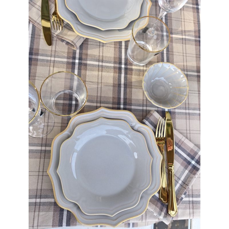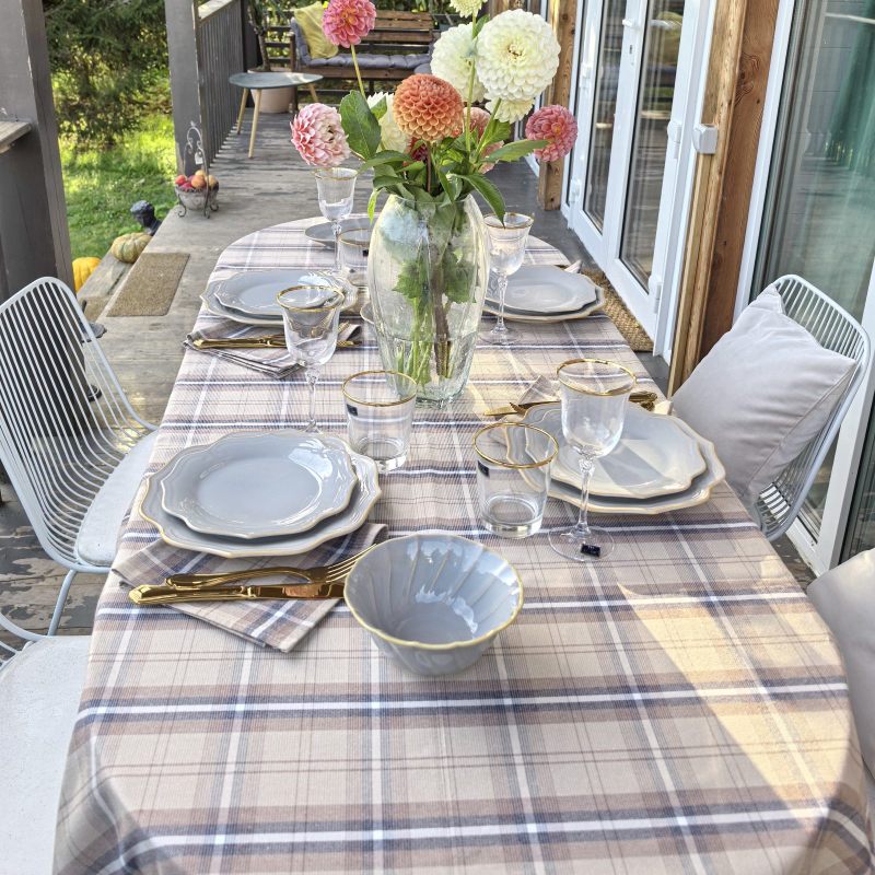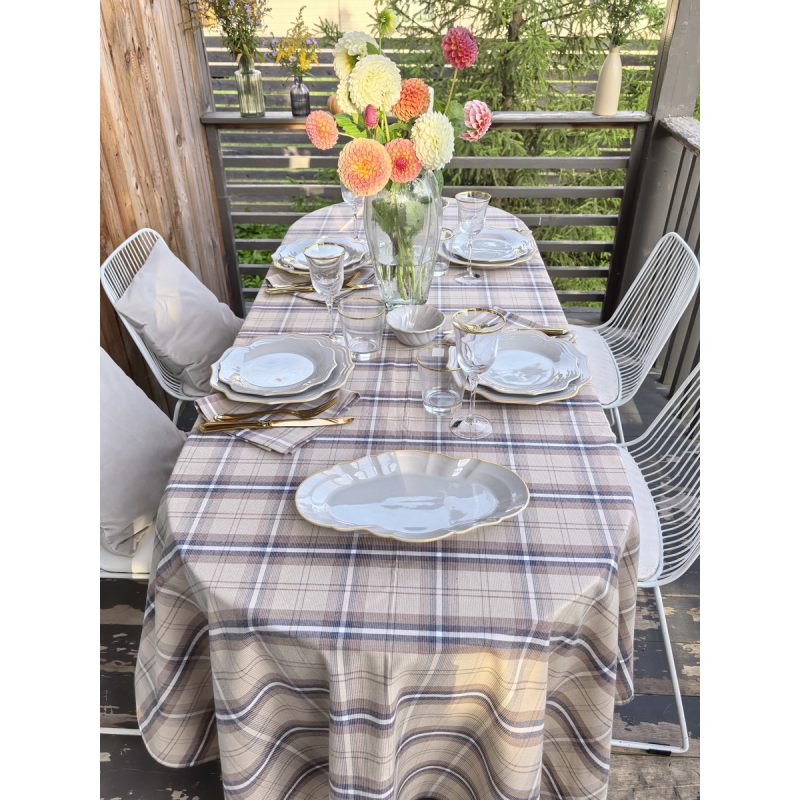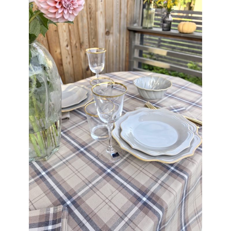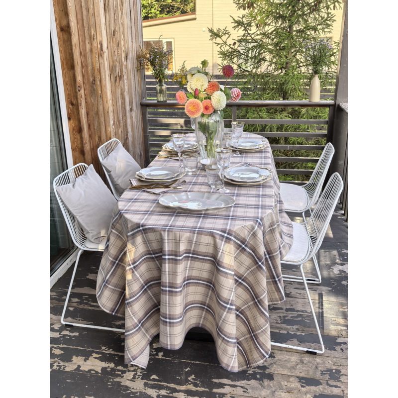 "Бежевый тартан" — это словно тихий хмелевой сад в осенние дни: сдержанный, изящный и в то же время насыщенный историей. Представь себе прямоугольную скатерть, словно тканое полотно, где тонкие линии и клеточки переплелись в узор, напоминающий о древних шотландских традициях, но в мягких бежевых тонах. Она словно дружелюбный портрет в уютном доме — несуетливая, элегантная и всегда готовая стать фоном для теплых разговоров или тихого угощения. Такой дизайн приглашает к спокойствию и утонченности, словно шепот ветра среди лесных тропинок.