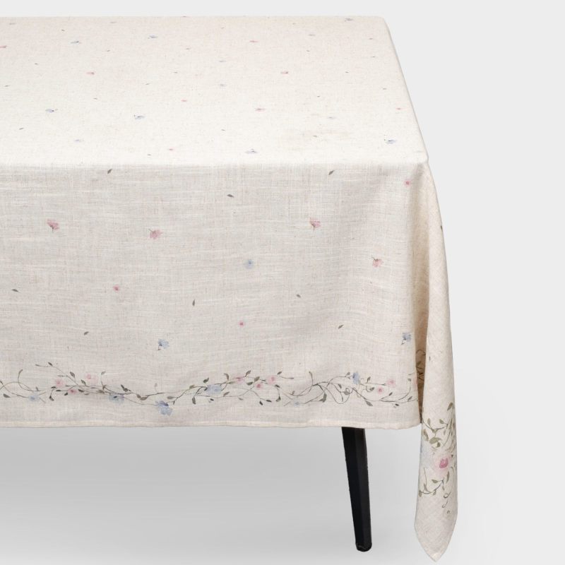 Скатерть на стол прямоугольная «Пасхальная» — воплощение пасхального настроения в каждом штрихе! Нежная льняная ткань оттенка топлёного молока словно хранит в себе тепло первых весенних лучей. Лёгкий цветочный орнамент — россыпь миниатюрных бутонов в пастельных тонах розового и голубого — напоминает о пробуждении природы после долгой зимы.