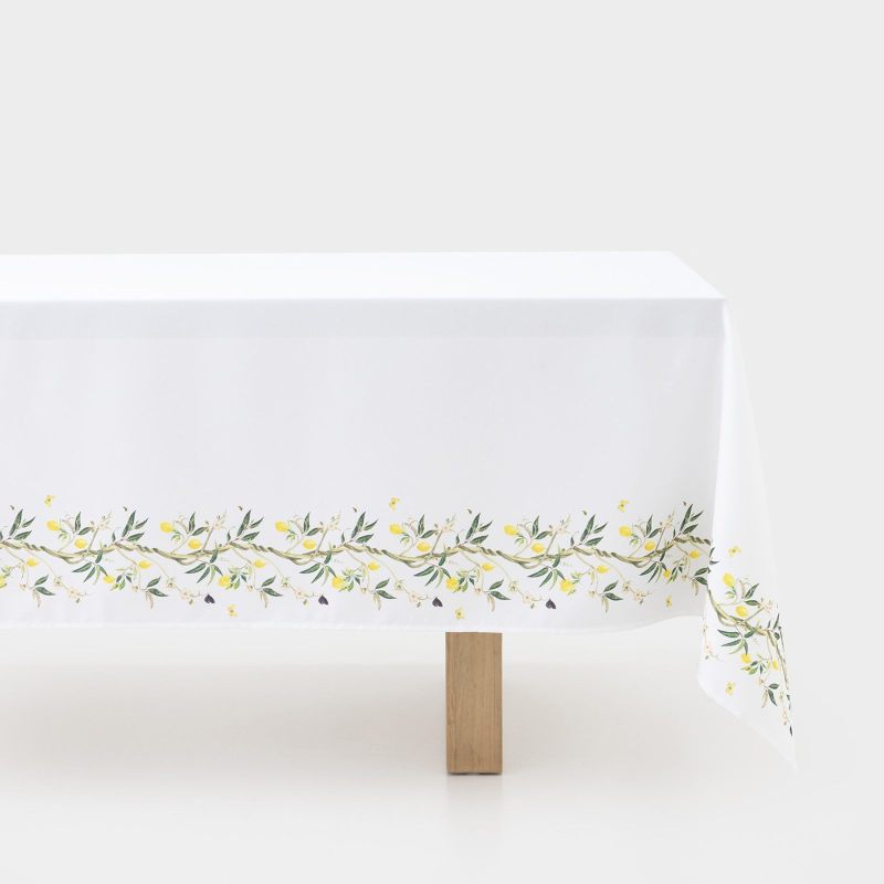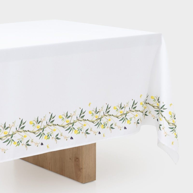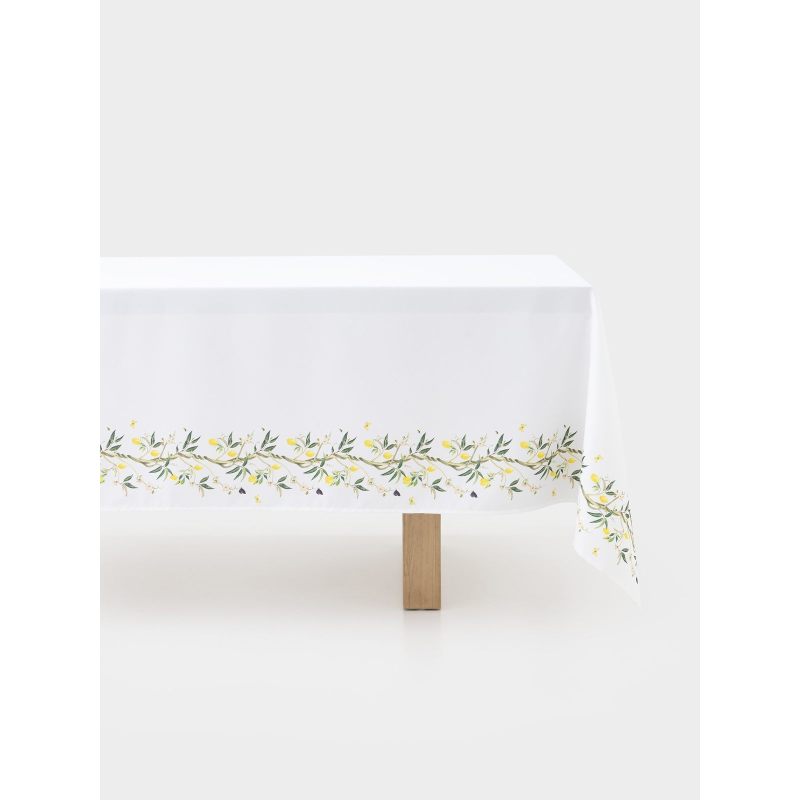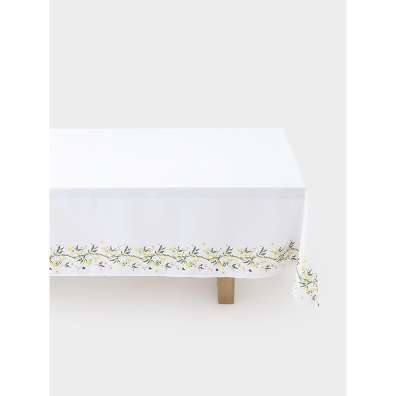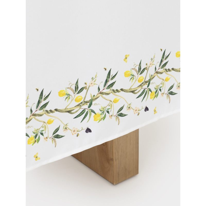 Эта скатерть — настоящий глоток весеннего воздуха в вашем доме. Изящный рисунок с сочными лимонами, раскинувшимися на ветках, создаёт атмосферу южного сада, наполненного солнечным светом и лёгким цитрусовым ароматом.