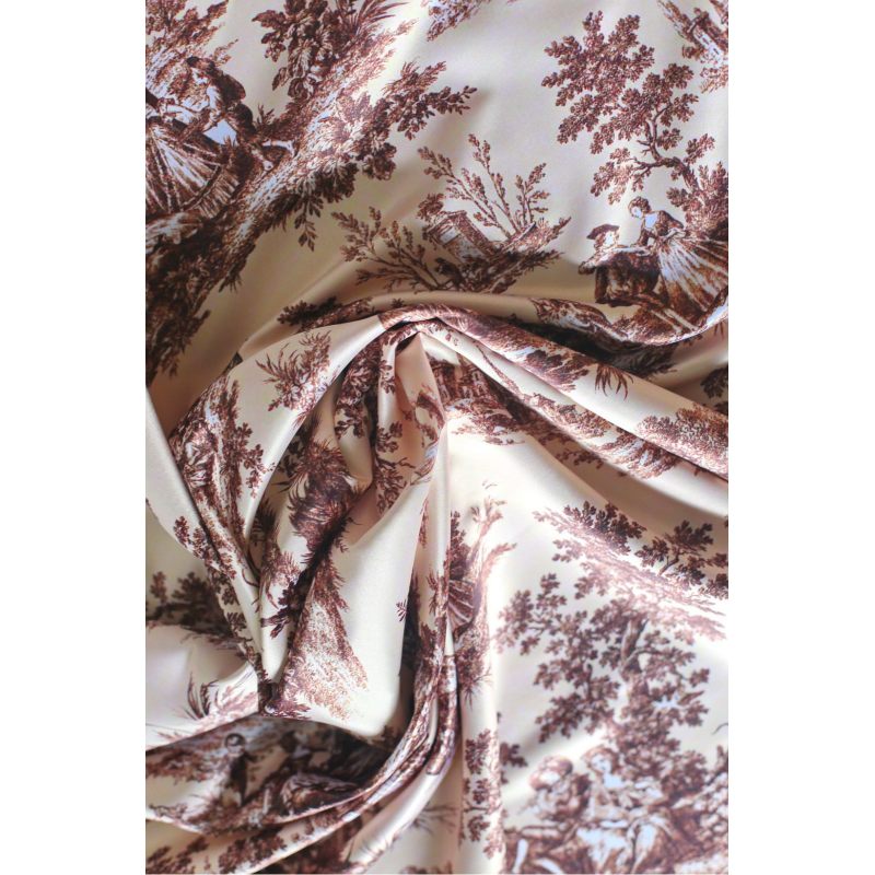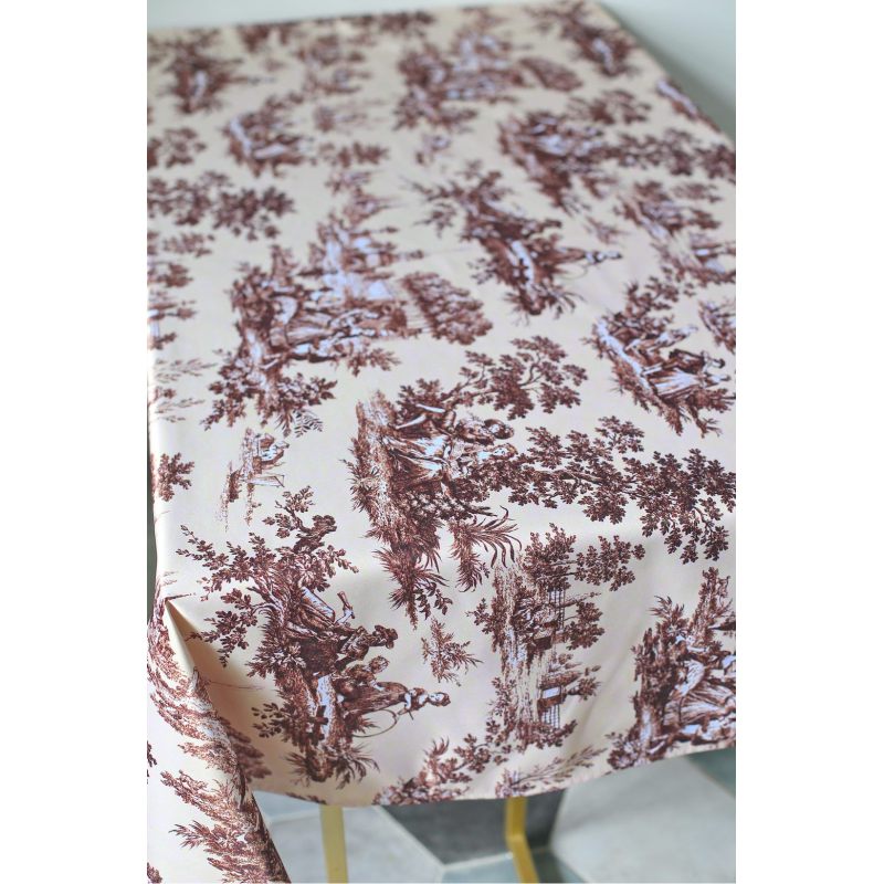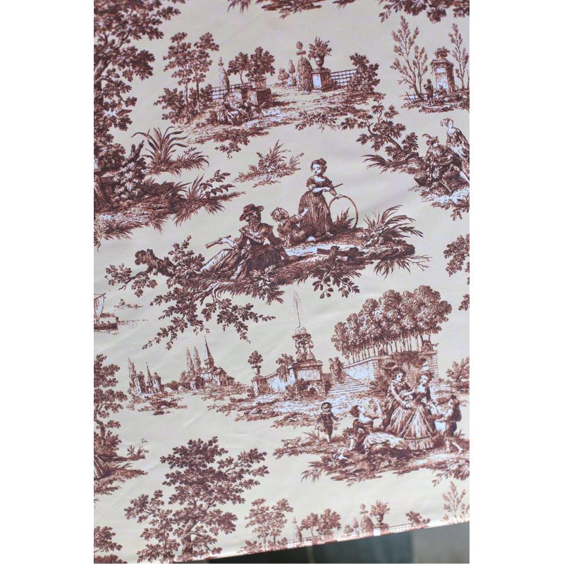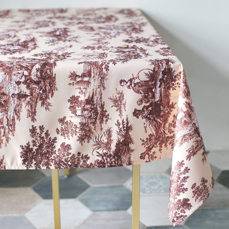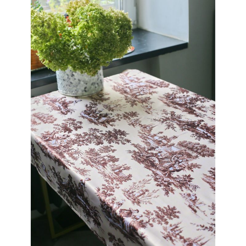 Скатерть "Туаль де жуи" в коричневом цвете — это воплощение изысканности и утончённого французского стиля. Её рисунок, вдохновлённый сценами из жизни в парке, переносит нас в эпоху элегантности и романтики. Нежные коричневые оттенки и детализированные изображения создают атмосферу уюта и тепла, идеально подходящую для семейных обедов или праздничных ужинов. Эта скатерть станет не только практичным элементом сервировки, но и настоящим украшением вашего стола, добавляя интерьеру нотку винтажного шарма. Благородные оттенки коричневого создают атмосферу утончённой роскоши и домашнего тепла. Изящный орнамент туаль де жуи рассказывает истории прошлых эпох, придавая интерьеру особый шарм.
