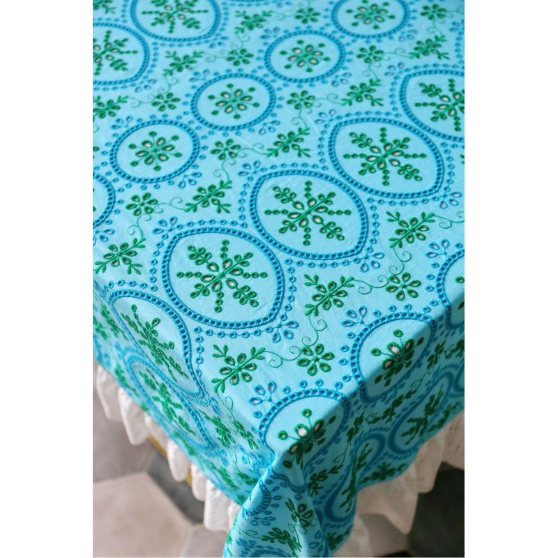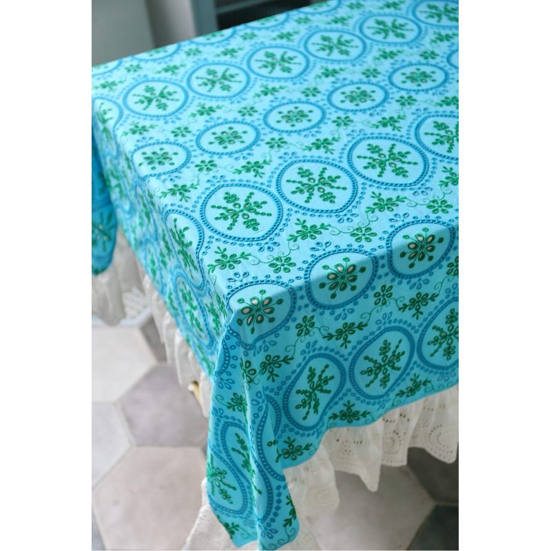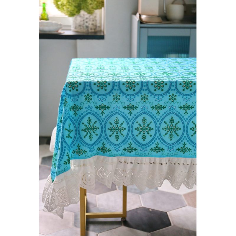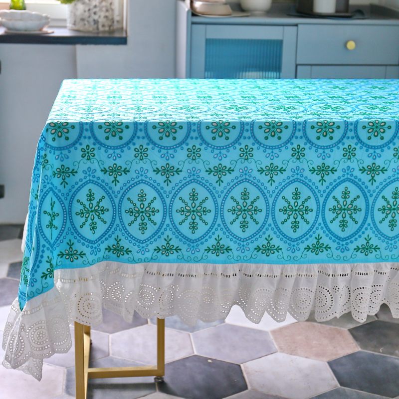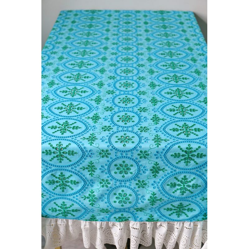 Красивая скатерть "Бирюза" наполнит Ваш дом атмосферой уюта и спокойствия. Прямоугольная скатерть украшена богатой вышивкой рисунком с растительными мотивами. Скатерть на стол изготовлена из ткани с шитьем и широкого белого кружева. Скатерть может использоваться как самостоятельный элемент интерьера, так и в качестве различных коллекций посуды от Myatashop. Скатерть голубая может использоваться как скатерть на кухню или как скатерть в гостиную. Прямоугольные скатерти на стол подойдут не только для домашней кухни, но для кафе или для ресторана. Купить скатерть прямоугольную – это отличная идея! Сделайте подарок для коллеги, подберите текстиль в подарок маме, родителям, мужчине, подруге, сестре и бабушке. Скатерти с вышивкой и кружевом, украсившие ваш стол/праздничный стол, – это отличный подарок на любые праздники, день рождения, юбилей, новоселье. Тканевая скатерть на прямоугольный стол "Бирюза" может стать эффектным элементом оформления стола. Подобрать подарки вместе с нашим магазином так просто!