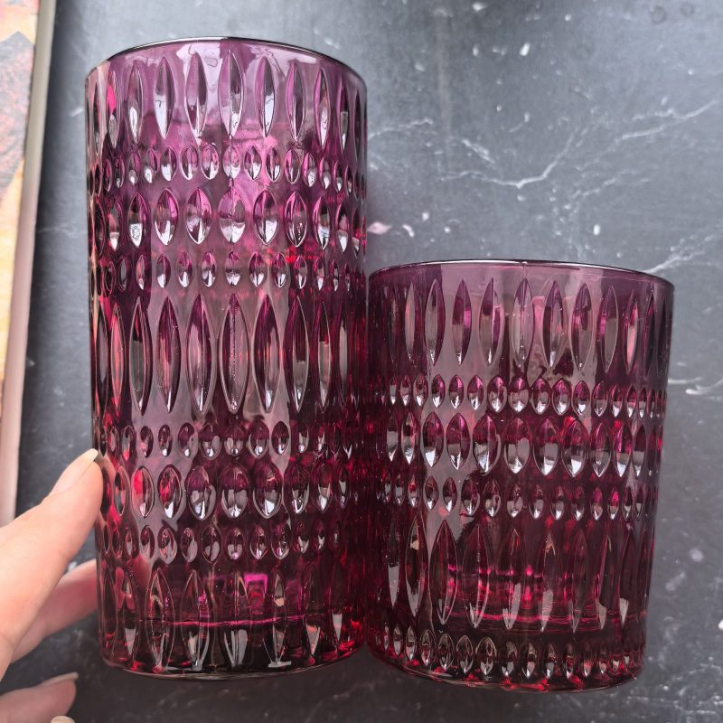 Ключевые слова для поиска: стакан бургунди, бордовый стакан, тонкое стекло, рельефный узор, новогодняя сервировка, праздничные бокалы, стильная посуда.