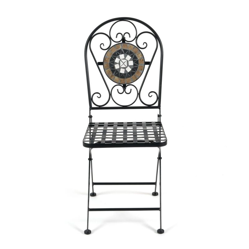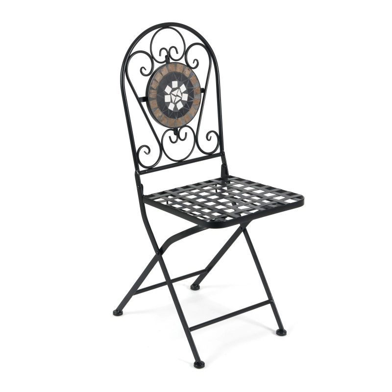 Элегантный кованый стул "GIORDANO" изготовлен из стального сплава с напылением краски. Складывающийся стул из металла с красивой мозаикой на столешнице выдержан в классическом французском стиле. Он прекрасно подойдет как для загородного дома, так и для кафе или летней веранды ресторана. Красивый и практичный стул прослужит Вам долгие годы, не требуя особого ухода. Идеально подходит к столу "GIORDANO".