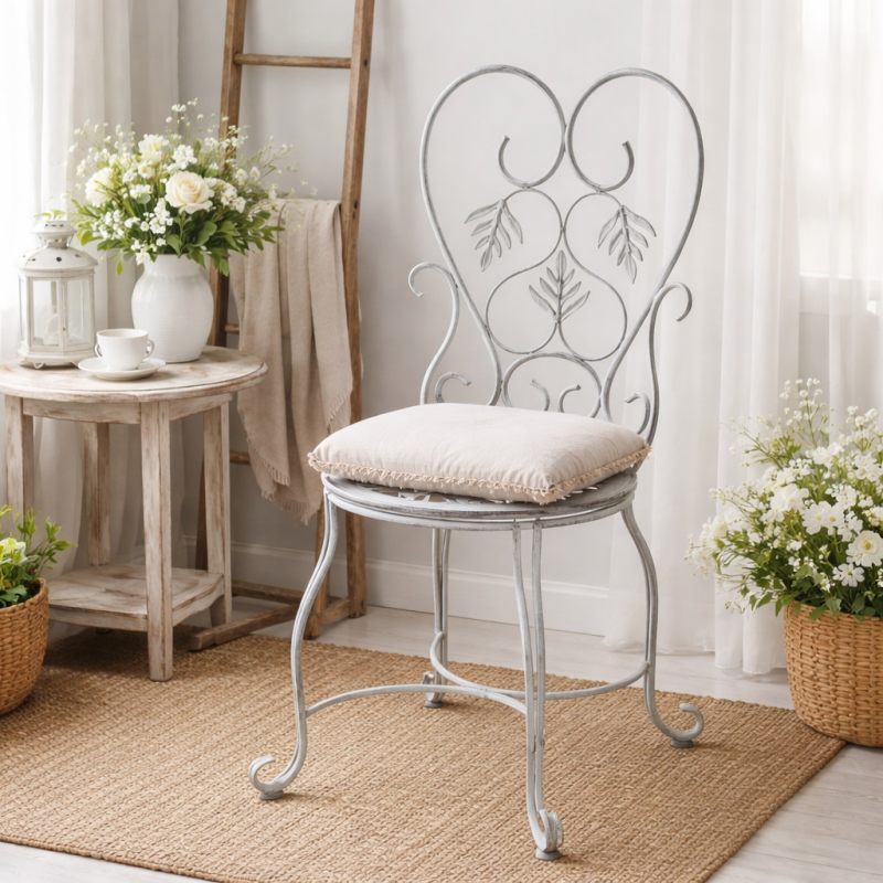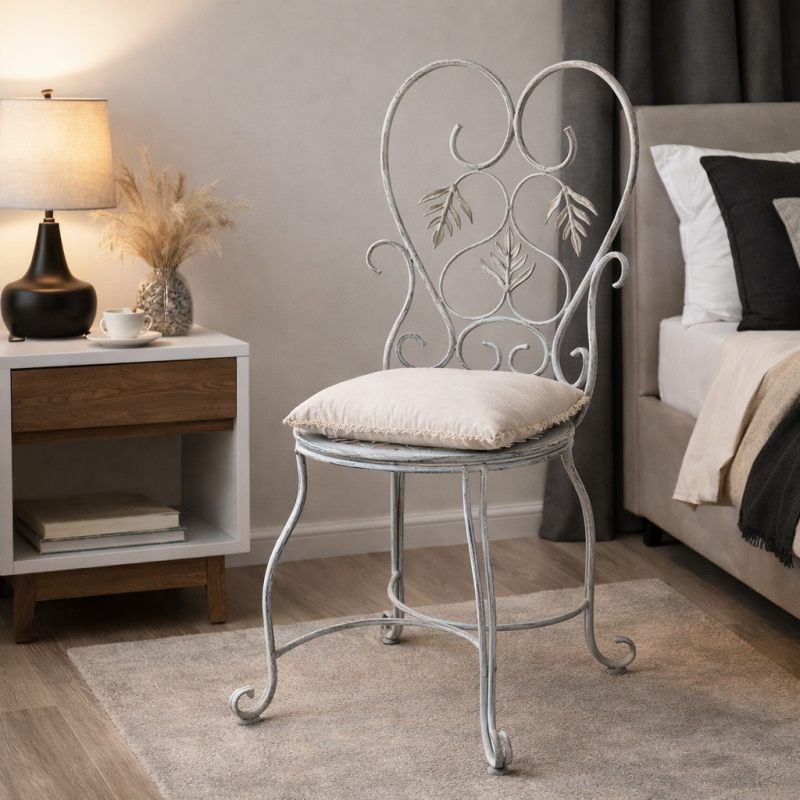 Кованый стул с растительным орнаментом — воплощение утончённой элегантности.