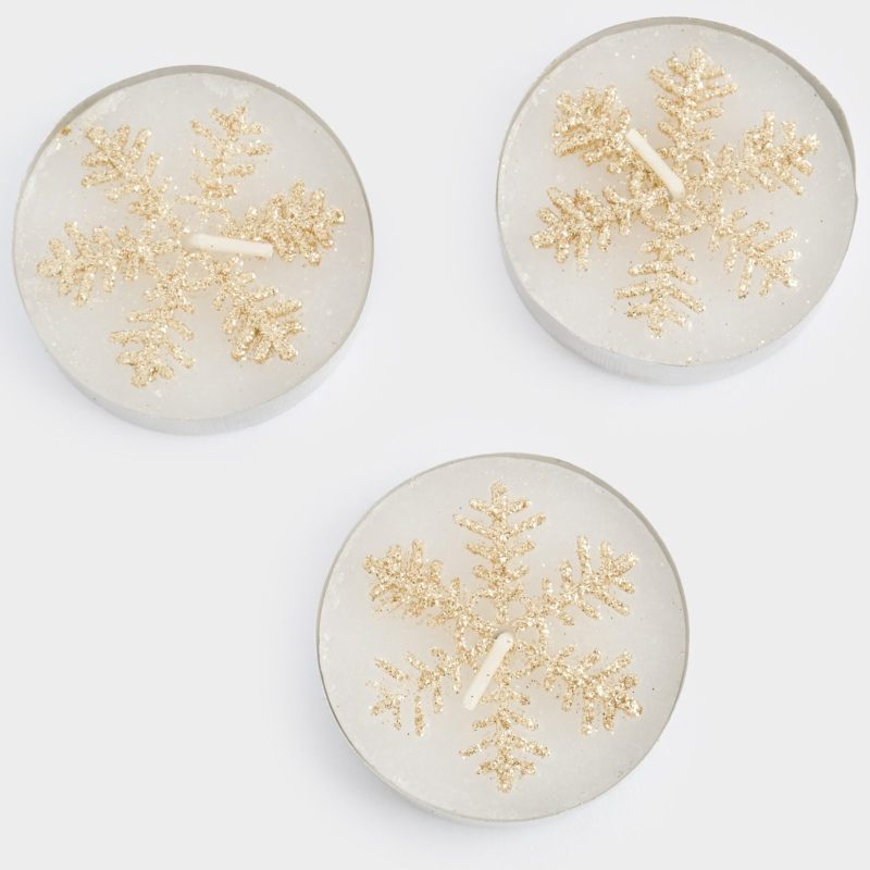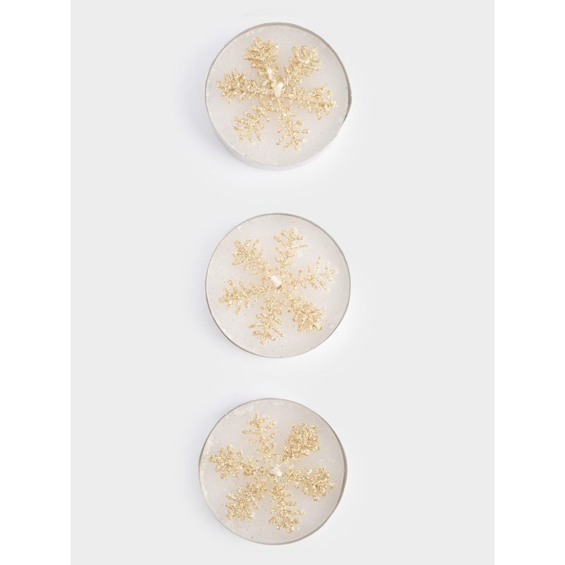 Три волшебные свечи создают гармоничную композицию, наполняющую пространство уютом и теплом. Изысканный дизайн в форме снежинок превращает каждую свечу в настоящий декоративный элемент