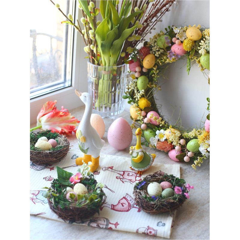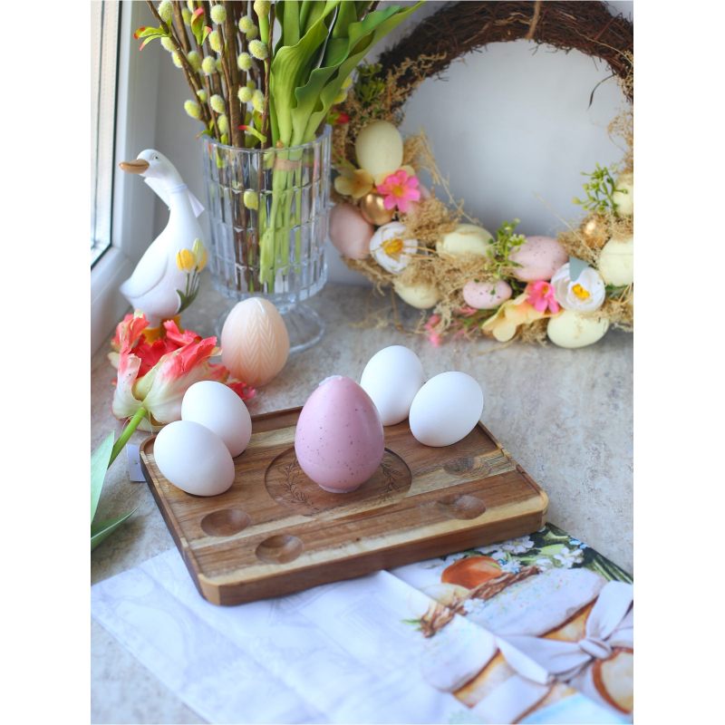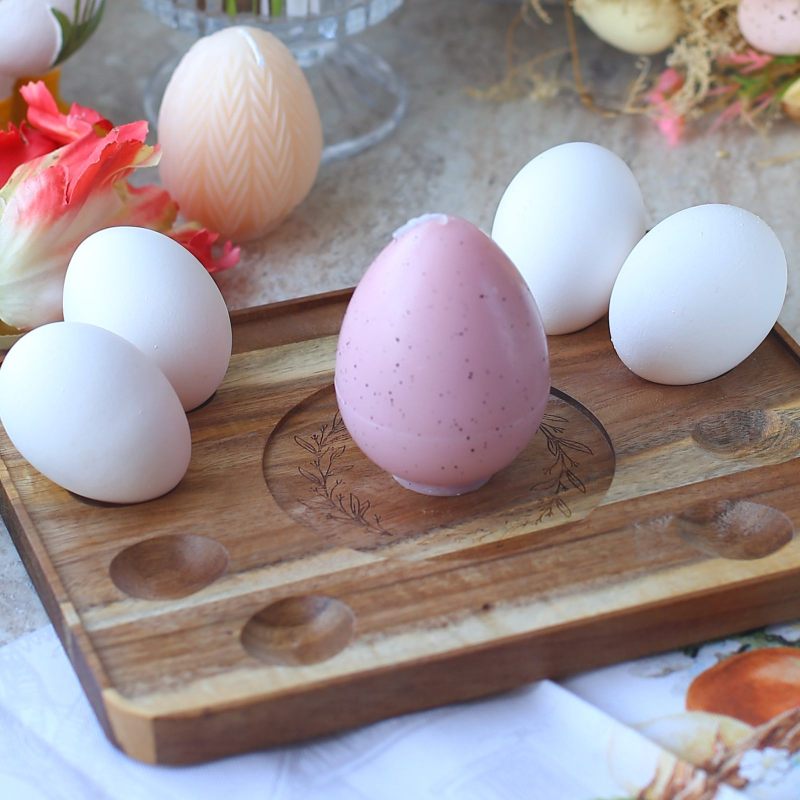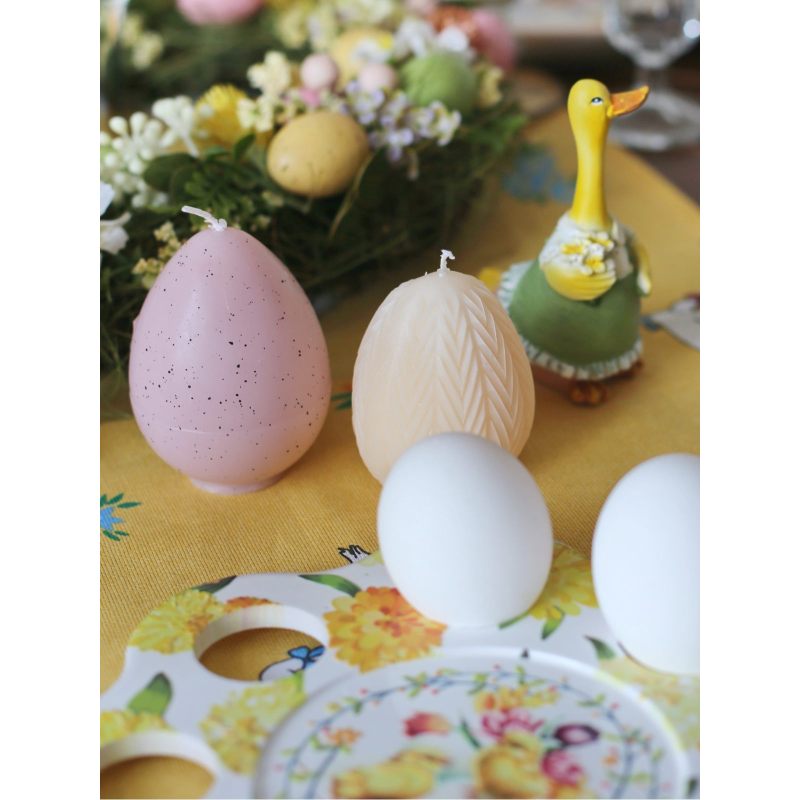 Декоративная свеча в форме пасхального яйца — уютный элемент праздничного интерьера.