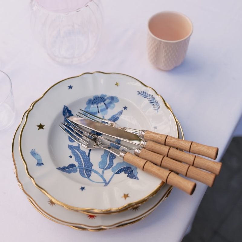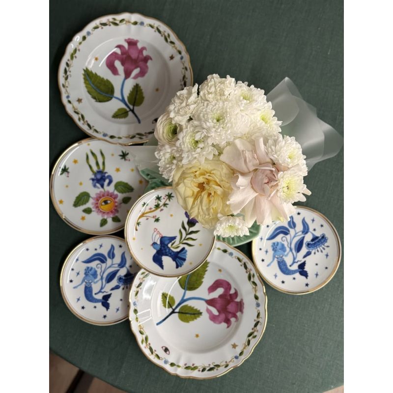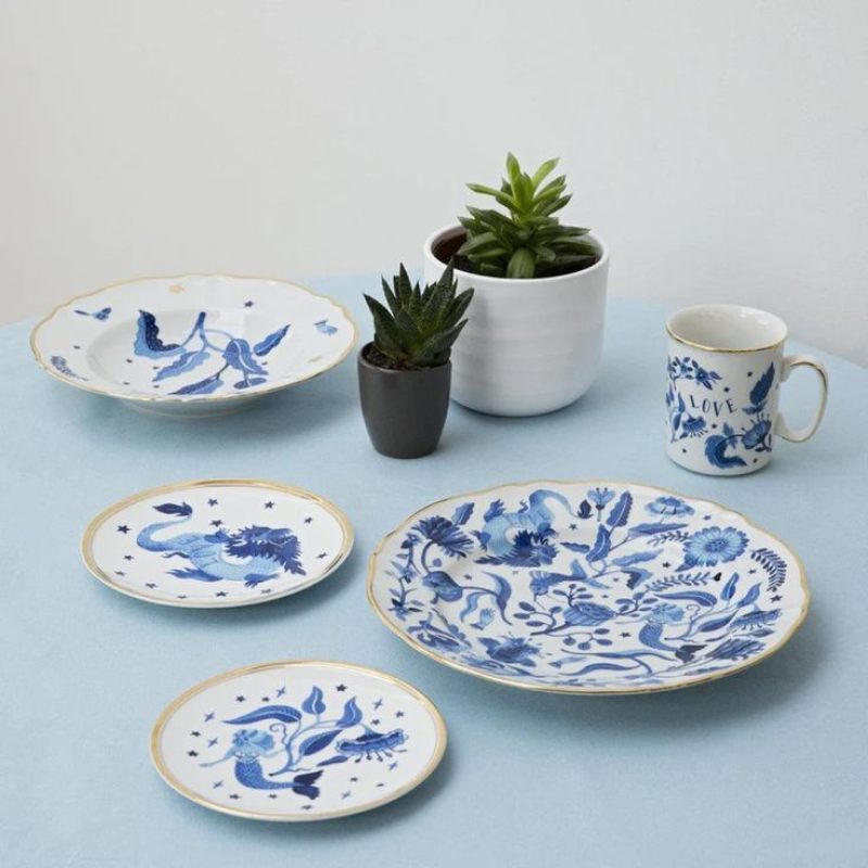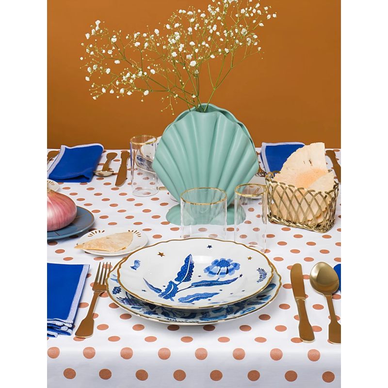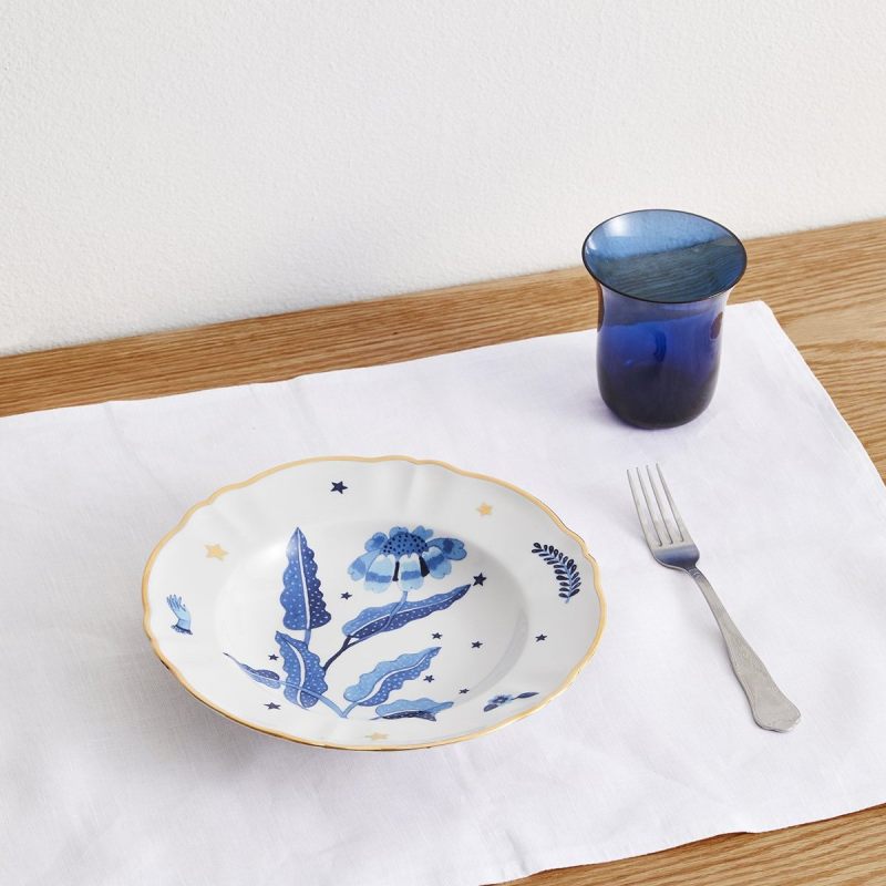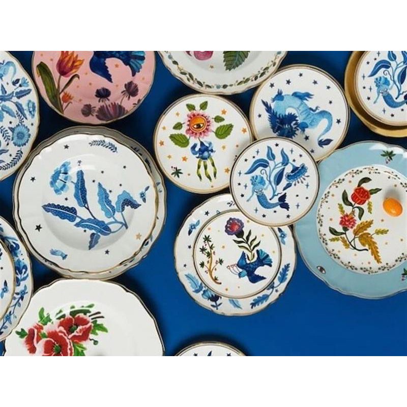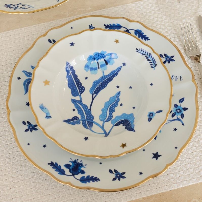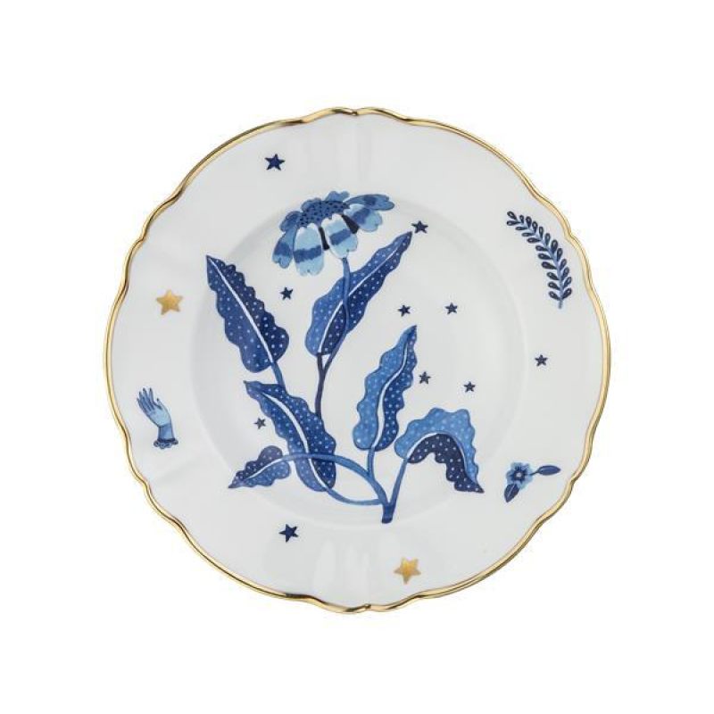 Превратите сервировку в произведение искусства с тарелкой !Fabula Marino!! Итальянский бренд Bitossi Home представляет изысканный фарфор, украшенный завораживающим морским мотивом: глубокий синий цветок, изящные листья, звёзды и утончённая деталь — рука в перчатке.