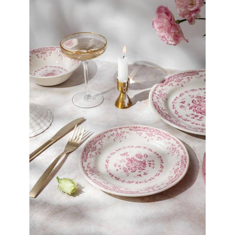 Изящный дизайн. Нежный флористический мотив с изображением роз в винтажном стиле придаёт тарелке особый шарм. Утончённый декор выполнен в технике деколи — каждый рисунок сохраняет глубину и чёткость после обжига.