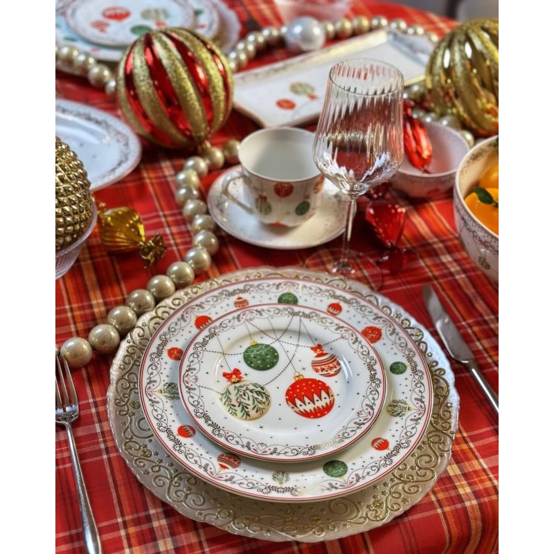 Посуда из коллекций "Новогодние шары - Christmas Eve" изготовлена из белоснежного фарфора и на его фоне, рисунки новогодней атрибутики ещё ярче. Посуда из магазина Мята поможет создать торжественный лад в Вашем доме и порадует гостей, ведь у Вас превосходный вкус.