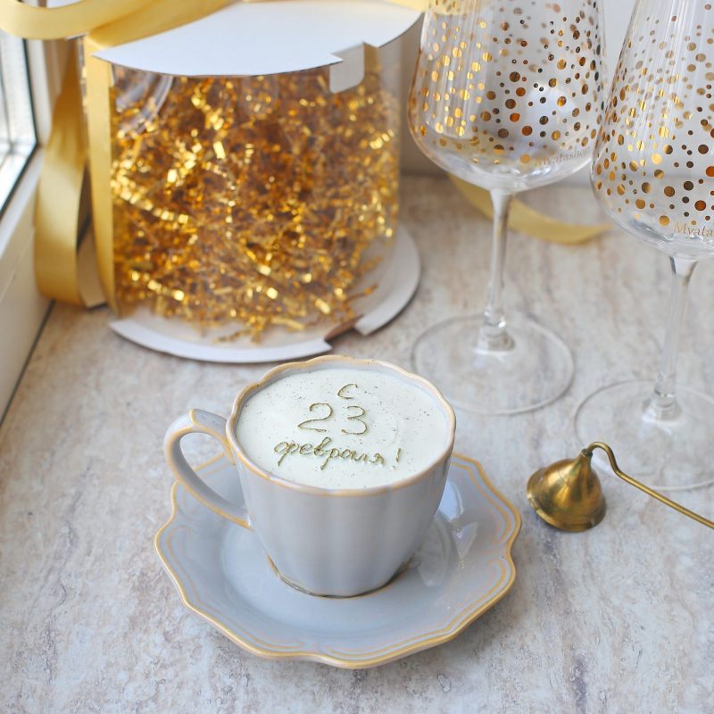К празднику 23 февраля мы создали особый десерт — торт в изысканной чайной паре Myatashop. Представьте: вы дарите не просто сладость, а целый вау-набор - мини-тортик в стильной кружке! Вы получаете нежнейший десерт и чашку, из которой потом можно пить любимый чай, кофе или какао и вспоминать праздник!