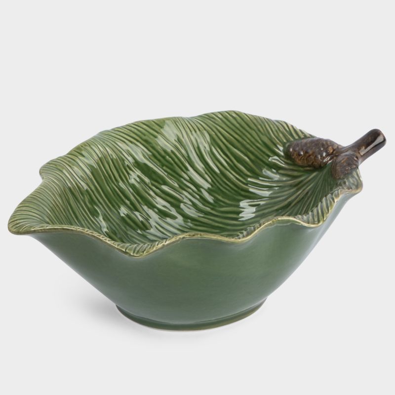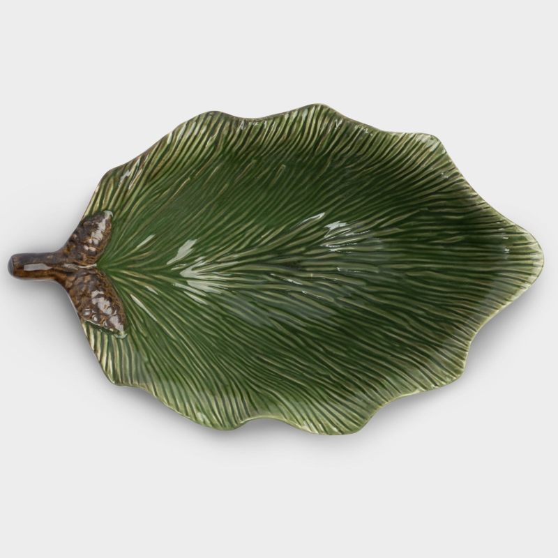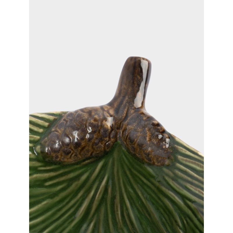 Погрузитесь в уют и магию зимних вечеров с уникальной керамической вазой в форме еловой ветви, украшенной изящными шишками. Глубокий зеленый цвет и детально проработанный рельеф создают эффект настоящей лесной композиции, которая станет ярким акцентом вашей новогодней сервировки.