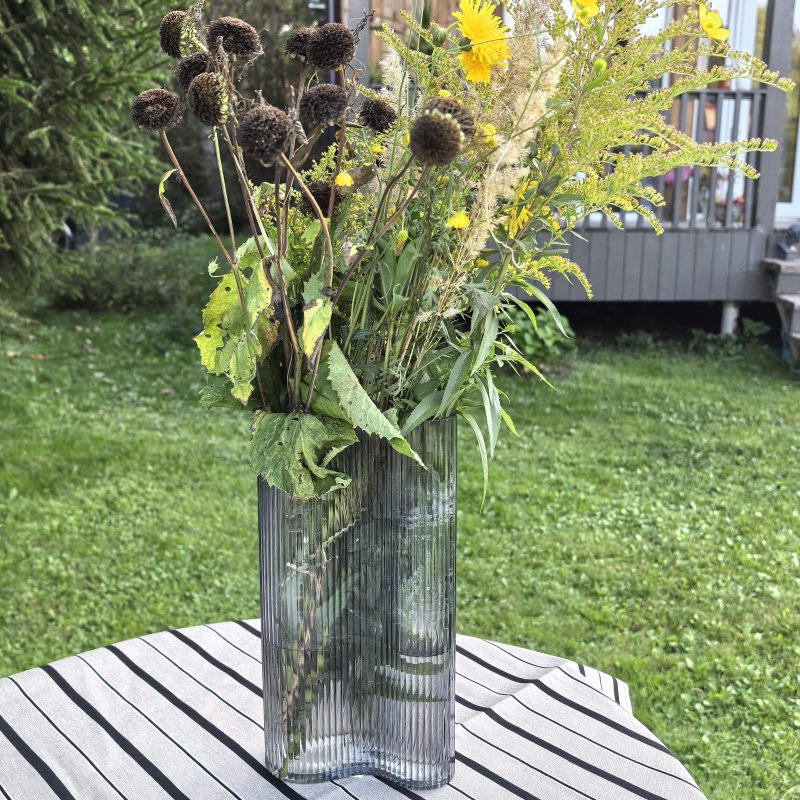 Ваза для цветов стеклянная ребристая фигурная станет оригинальным дополнением обстановки Вашего дома в спальне или в гостиной. Ваза для цветов прозрачная с ребристой структурой выполнена из рифленого стекла. Декоративная ваза представлена в прозрачном (белом) и сером цвете. Ваза для цветов стеклянная может использоваться как ваза для сухоцветов, ваза для тюльпанов, декор для интерьера, ваза декоративная. Ребристая структура стенок и причудливые формы ваз создают уникальную игру света, создавая особую атмосферу уюта. Ваза маленькая и ваза большая подойдут для живых цветов, сухоцветов, декоративных растений или композиции из искусственных цветов. Вазу интерьерную можно разместить на небольшом столике, полке или тумбочке. Ваза для цветов стеклянная ребристая станет желанным подарком женщине для дома. Вазу декоративную можно преподнести маме, бабушке, сестре, дочери, племяннице, внучке или коллеге по работе. Ваза под цветы - хорошая идея для подарка на 8 марта, на день рождения, юбилей, новоселье. Создайте неповторимую атмосферу в Вашем доме с предметами декора из нашего магазина!